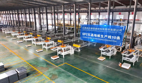 江西吉拉迪諾建材科技股份有限公司,占地面積近300畝,建筑面積13萬(wàn)多平方米,總投資5億元,擁有20余條生產(chǎn)線(xiàn),員工近300人。現(xiàn)有SPC石晶地板生產(chǎn)線(xiàn)十條、德國(guó)豪邁開(kāi)槽線(xiàn)兩條、大型商用卷材生產(chǎn)線(xiàn)四條、水墨彩印生產(chǎn)線(xiàn)兩條、同透地板生產(chǎn)線(xiàn)兩條,超大型運(yùn)動(dòng)地板生產(chǎn)線(xiàn)一條、是彈性地板行業(yè)產(chǎn)能量大,硬件實(shí)力強(qiáng)的生產(chǎn)廠(chǎng)商之一。